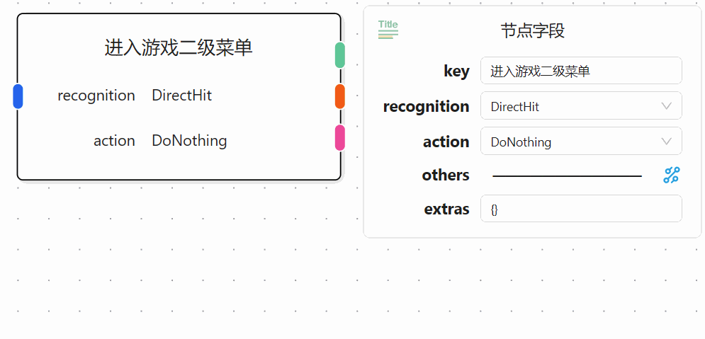 当有单独选中的节点时,编辑区右上角会显示 节点字段 面板,我们可以在这里配置当前选中节点的字段键值: