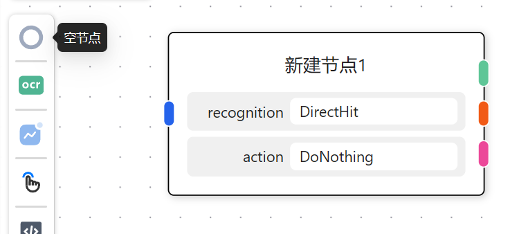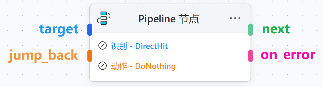 • 节点左侧为入口端点,接收任意出口连接,target 会直接编译,jump_back 会添加标记(详见节点属性)。